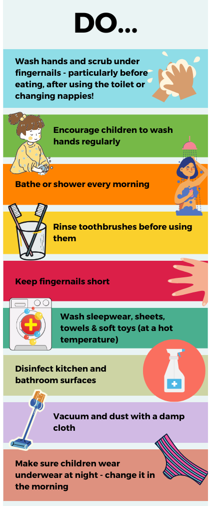 We have been asked to share with parents information about threadworms. Please look at the chart below, or you can click on the NHS to gain further information.